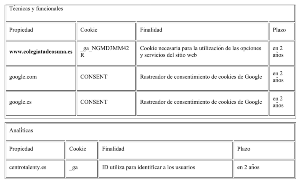 las de carácter técnico y las necesarias para el funcionamiento del sitio web o la prestación de