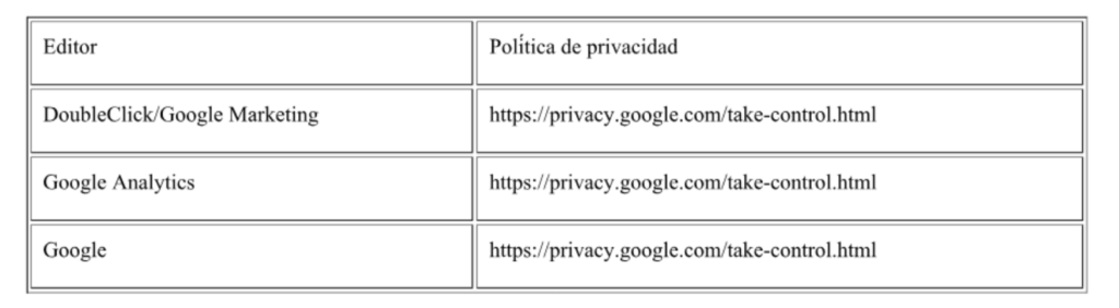 Proveedores externos de este sitio web: