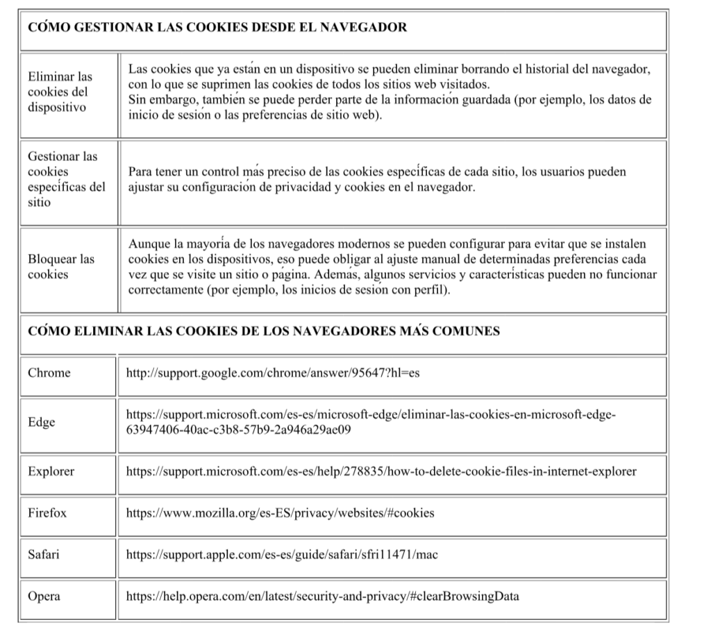COOKIES UTILIZADAS EN ESTE SITIO WEB Y COOKIES CONTROLADAS POR EL